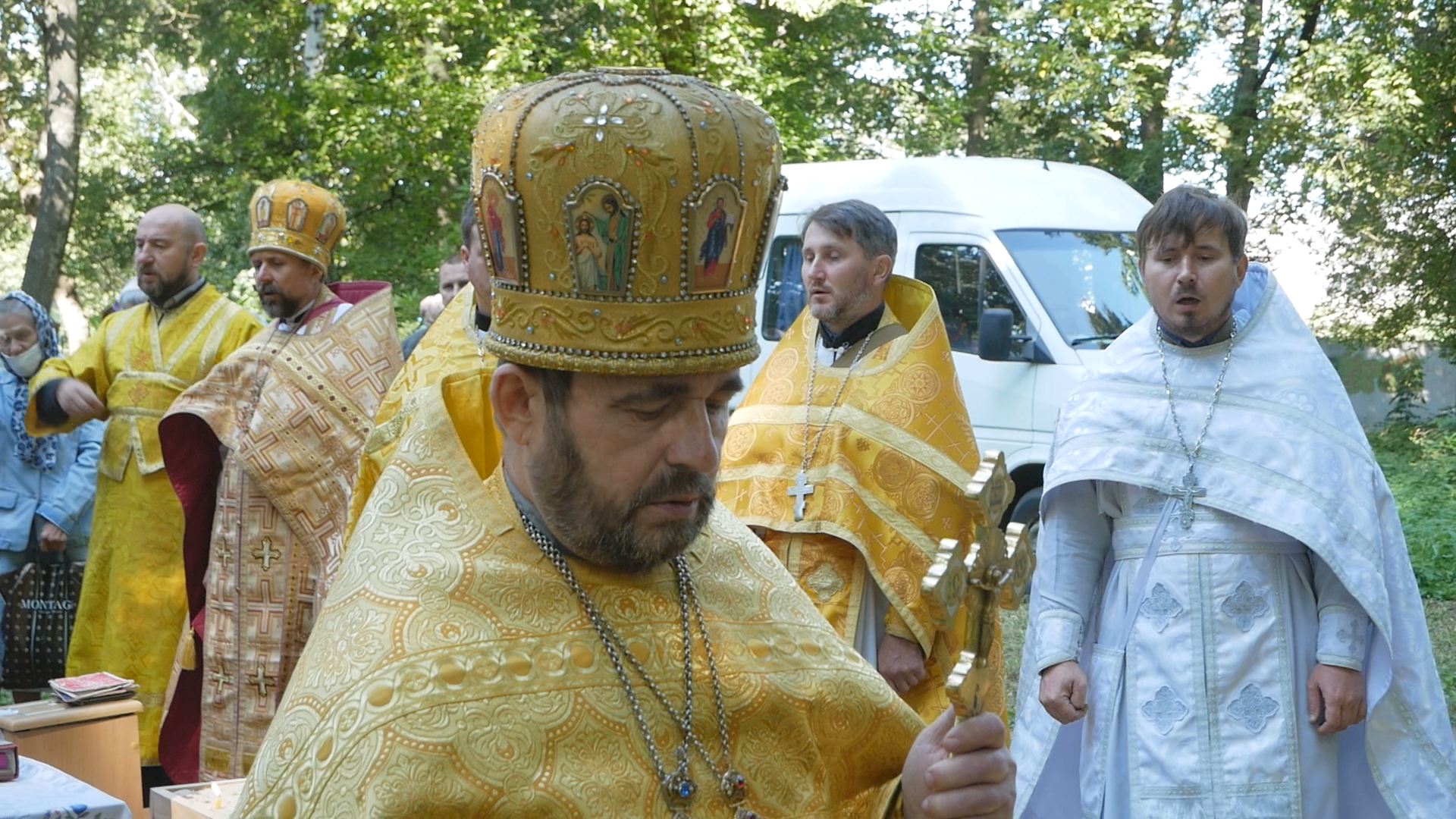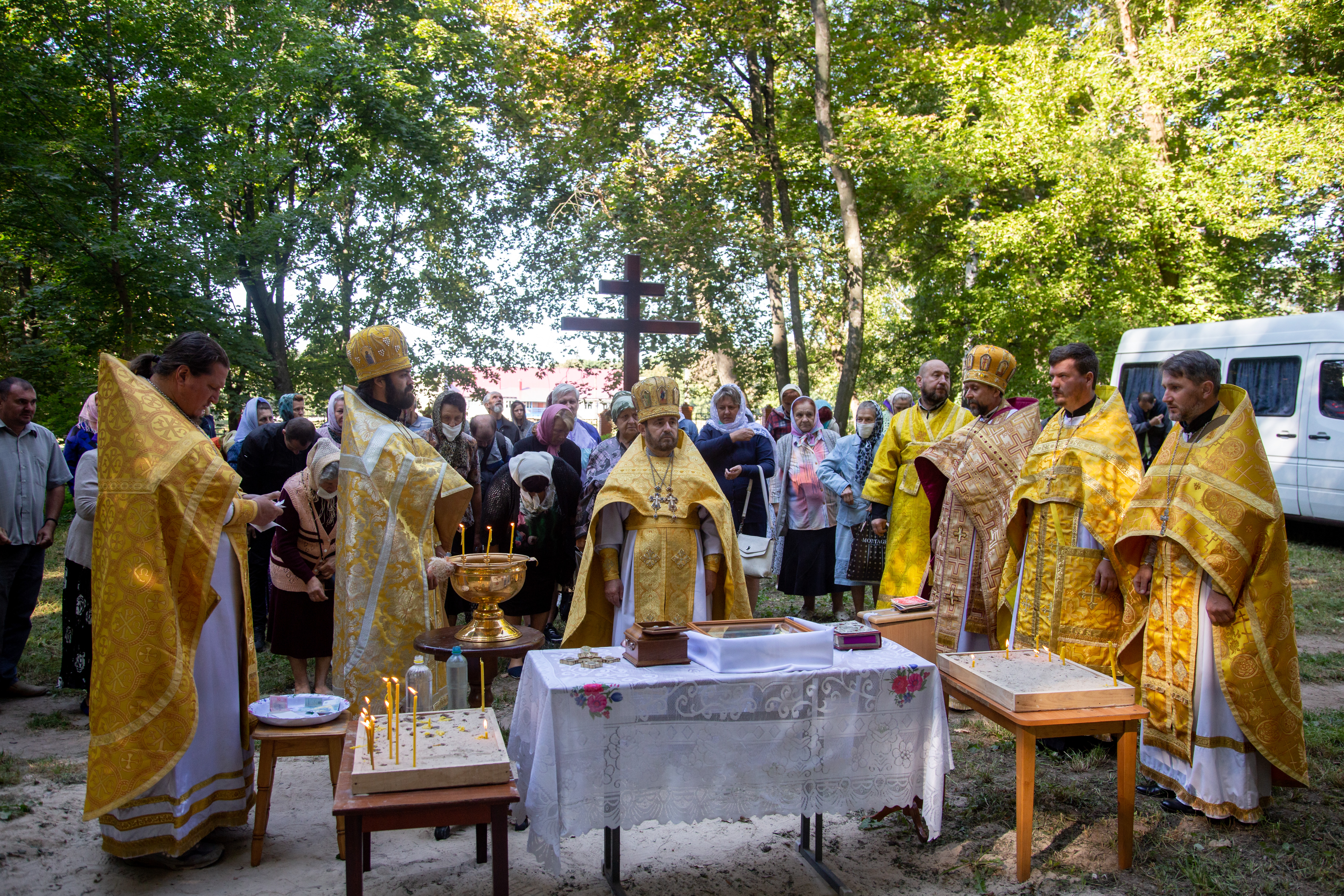 В ПАРКУ БУЛА ВІДСЛУЖЕННА БОЖЕСТВЕННА ЛІТУРГІЯ.НА СВЯТО З`ЇХАЛИСЯ СВЯЩЕННИКИ З РІЗНИХ КУТОЧКІВ ЄПАРХІЇ , ЩОБ ВШАНУВАТИ ПАМЯТЬ СВЯТОГО.